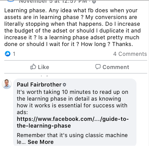 We see this all the time in AdEspresso’s private group for University members: People are posting scenarios, questions, and even details about their marketing strategy and performance that they’d be extremely unlikely to publish publicly, and they can get personalized, expert answers from several different members of our staff.
