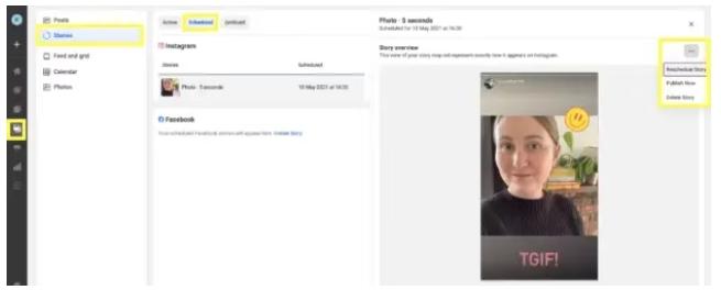 In this area, you can manage your Story — publish it immediately, reschedule it or delete it from your lineup.
