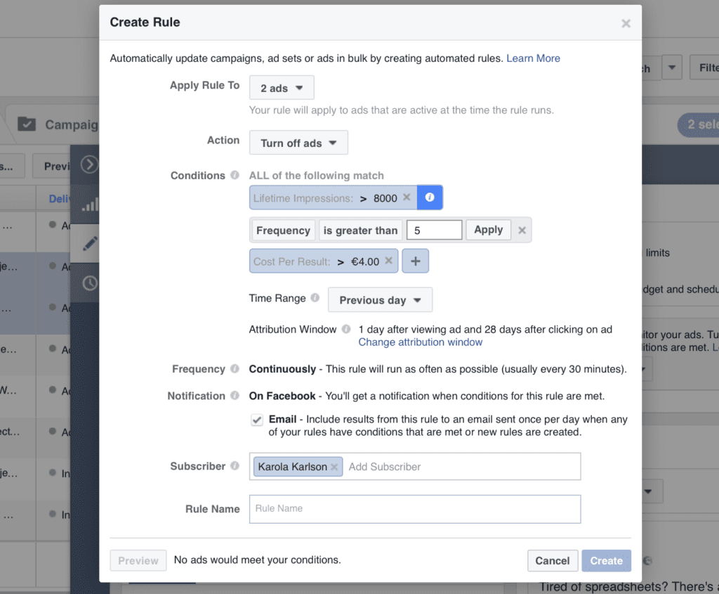 - 4 – When setting up a new Facebook ad campaign, select a ruleset you’d like to apply
