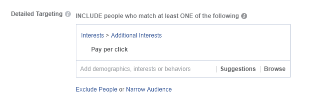Simply click that target symbol and you can refine your audience by demographics, interests, and exclusions.