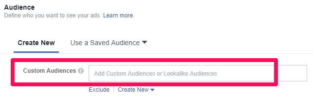 Here, you’ll have a chance to select the saved audience mentioned above from a drop-down menu.
