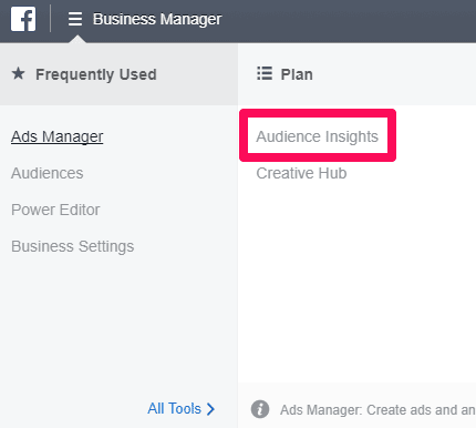 Just navigate to the “Plan” dropdown from Ads Manager, then click “Audience Insights.”