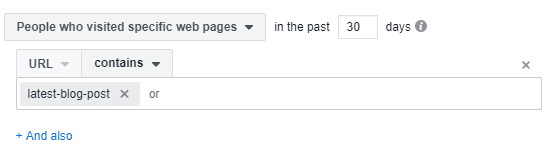 Now select “People who visited specific web pages” and enter the latest blog post that you promoted: