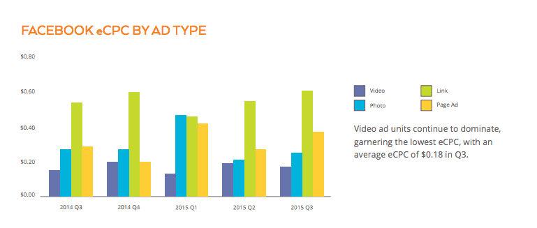 A report by Kinetic Social uncovered that video ads have the lowest eCPC compared to other ad types, with an average eCPC of $0.18.