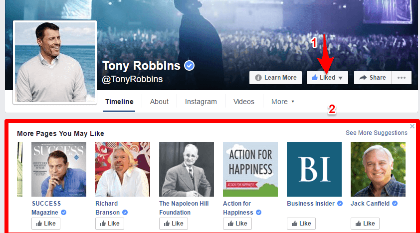 If you scroll down, you will notice a section on the left-hand side saying “liked by this page.” You can click it and get even more suggestions!