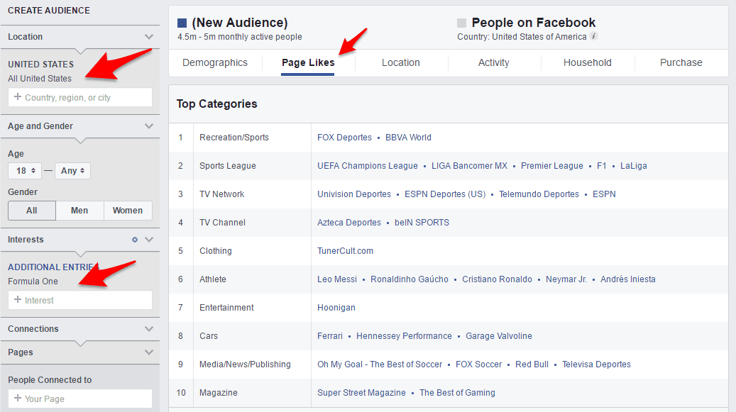 - Step 5: Compare the number of likes on the fan page to the “monthly active people in” in Audience Insights