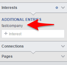 When you’re searching for interests, Facebook has keywords just like Google. However, on Facebook, it’s words that they put on your profile to fit you into a “box” that advertisers can target. This is based on your behavior, on which fan pages you like and on lots of other variables.