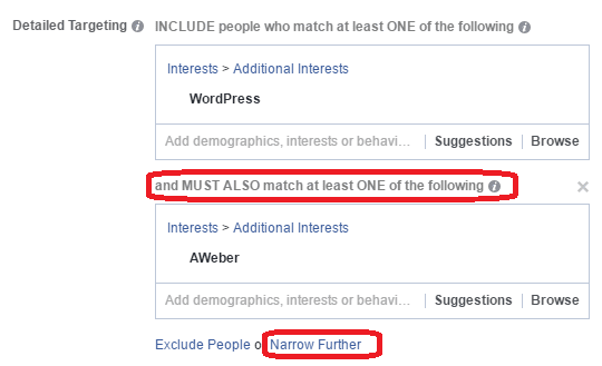 You can apply this when you look for targeting ideas such as influencers, events or magazines. Instead of just targeting Bubba Watson, you can expand to also target people who like both Tiger Woods AND Bubba Watson. That allows you to just grab the hardcore golfing fans who are part of the Tiger Woods fan page.
