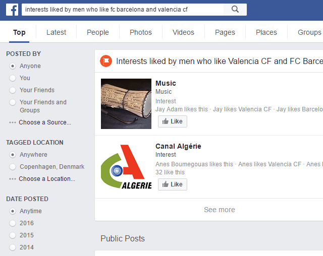 - Step 2. Enter an interest, your country of choice and click the “Pages Likes”-tab (see screenshot below).