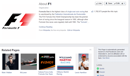 As you can see in the screenshot above, for the keyword “Formula One”, after I sorted by affinity, only the first three are somewhat related to Formula One and motorsport. The rest are football related. If this was a strong fan page you’d see lots of motorsports related pages at the top of the affinity-list.